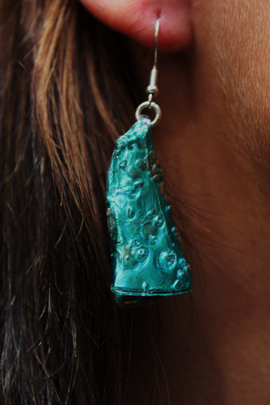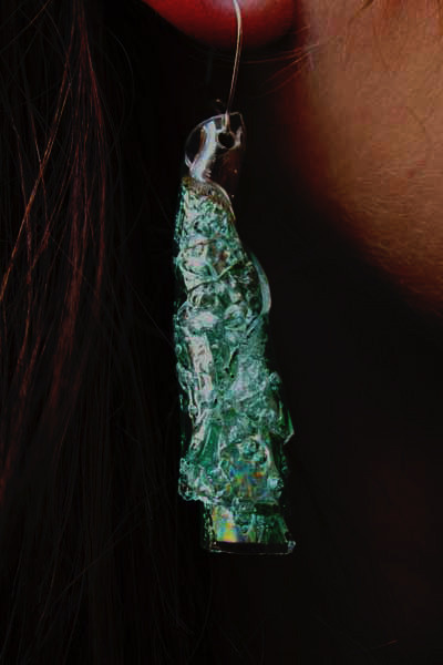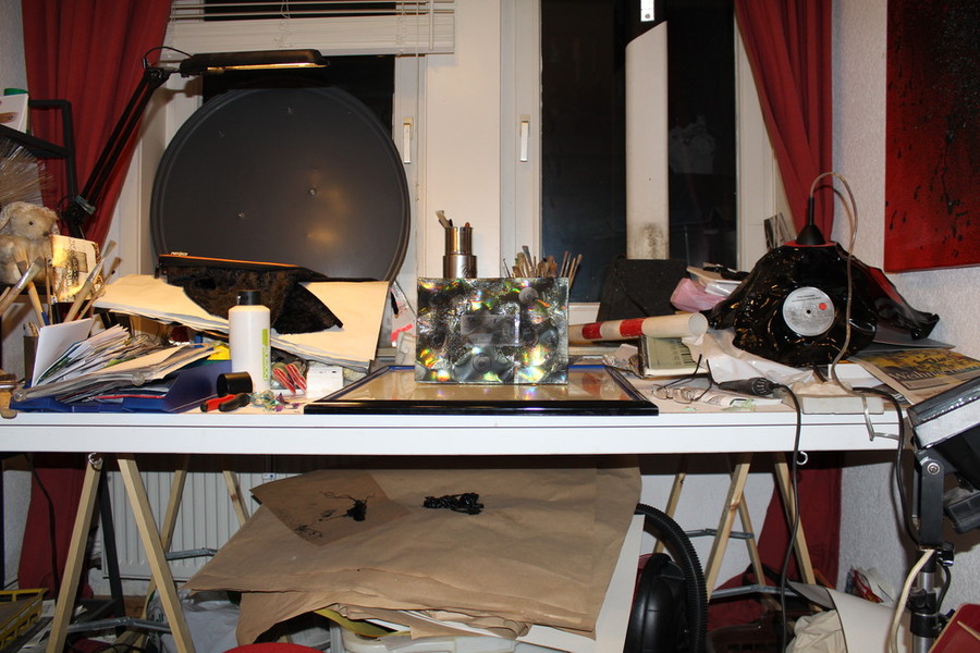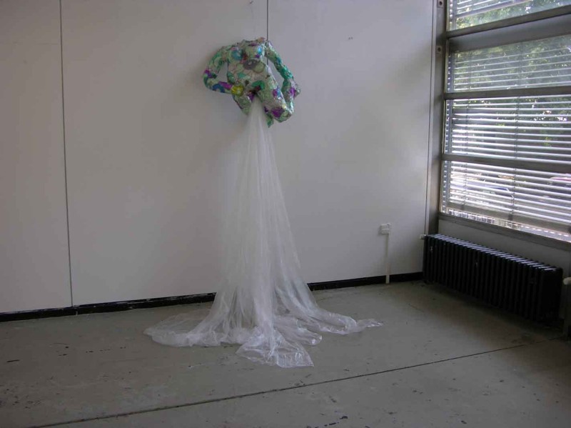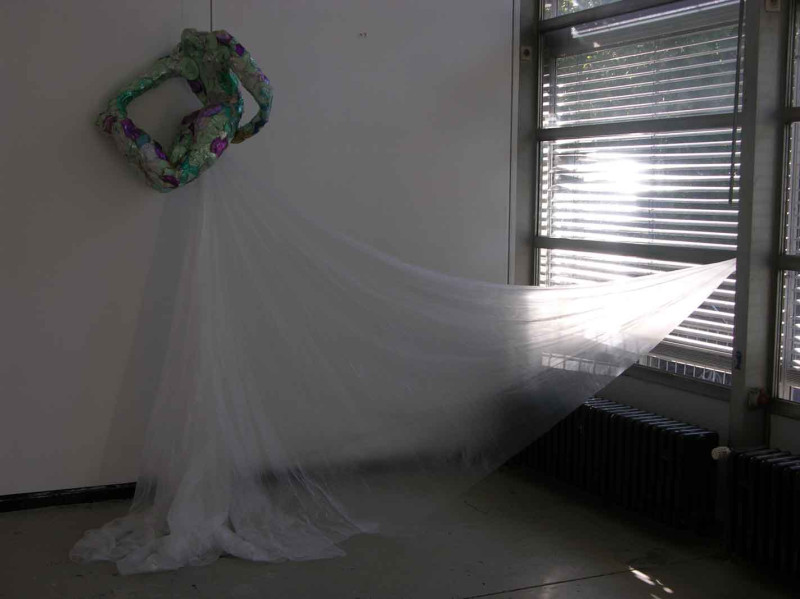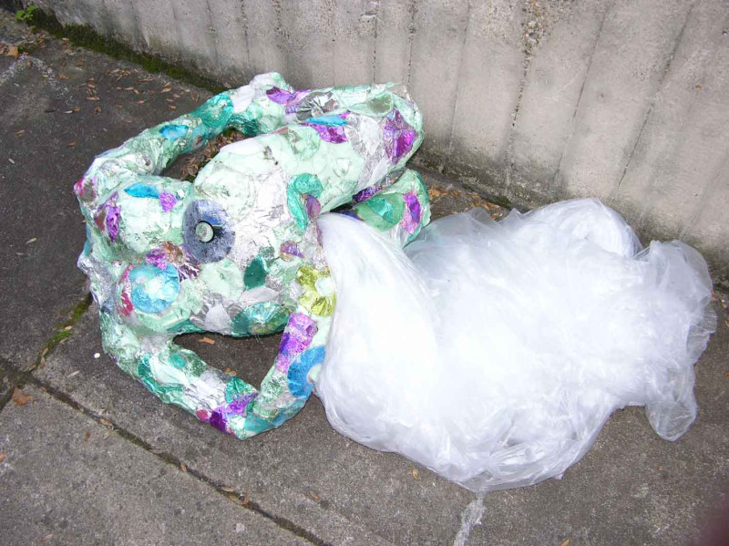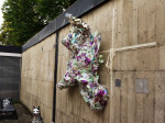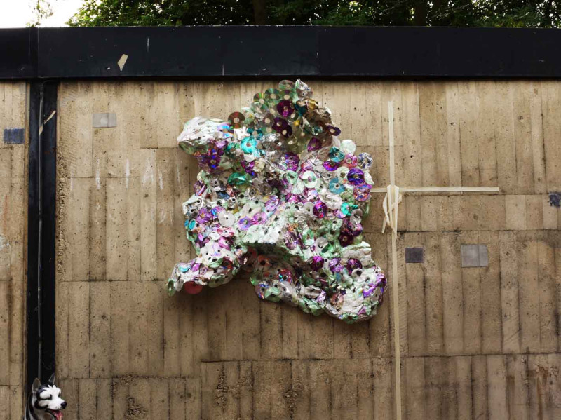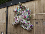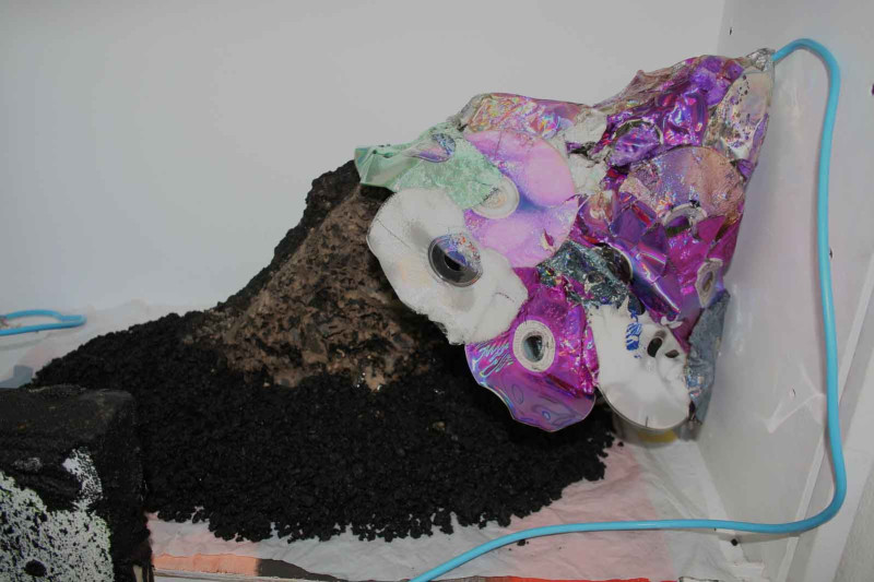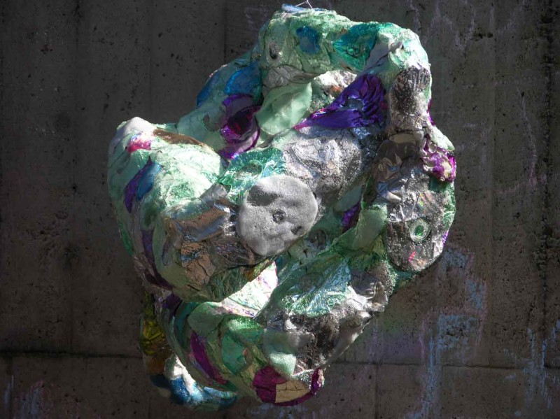 Ein weiblicher Torso der verrenkt bis deformiert erscheint, geformt aus Datenträgern, welche ein ähnliches Schicksal erleiden mussten.