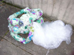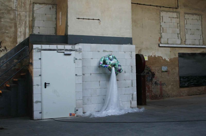 Sofort drängt sich ein sexueller Inhalt auf, ohne dabei vollkommen eindeutig zu werden. Was noch am klarsten scheint, ist zunächst die Deutung der Plastikfolie, welche sich aufgrund der Struktur und Positionierung kaum anders als „fließend“ interpretieren lässt. Es bleibt jedoch offen, was fließt.